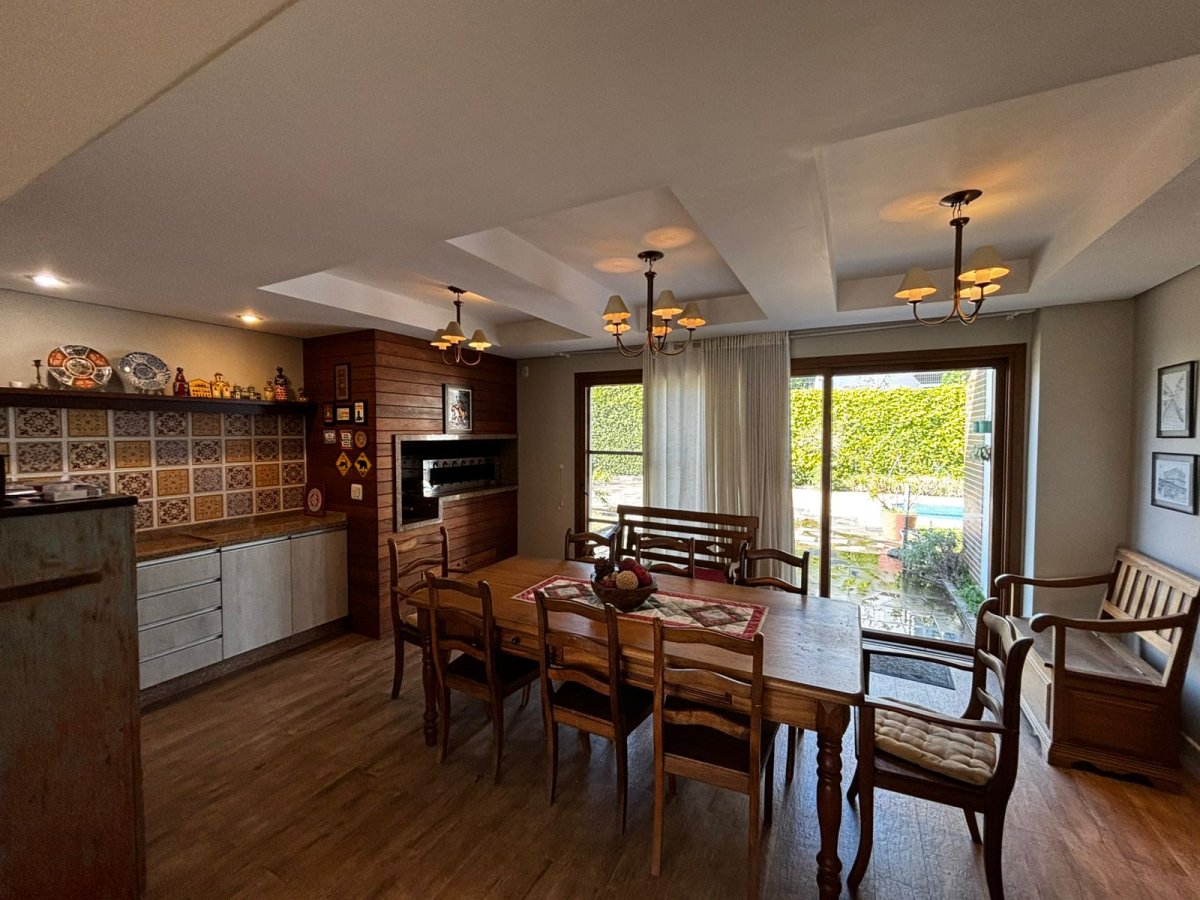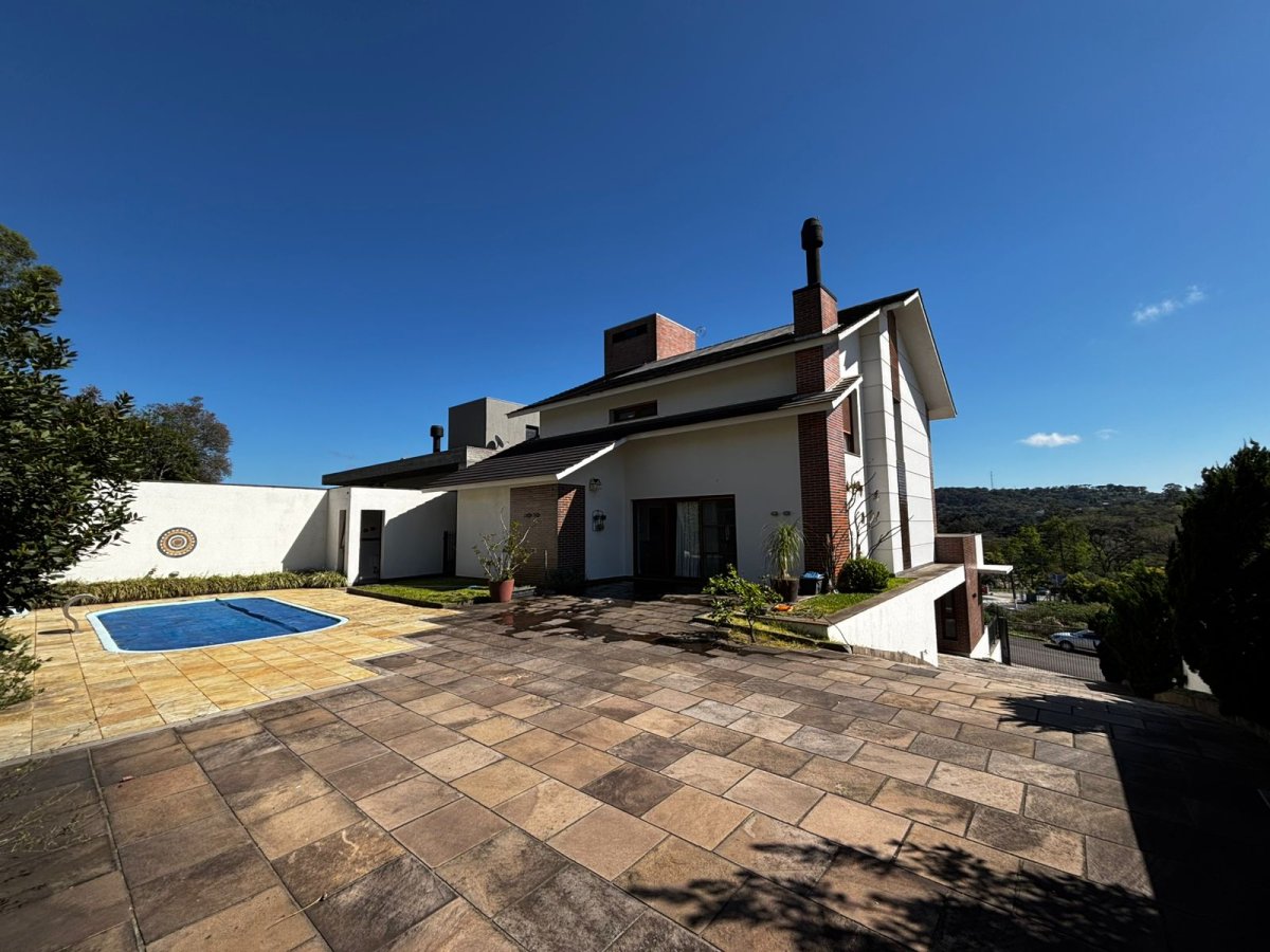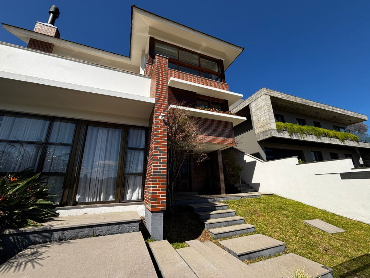 2º Pavimento: 01 suíte, lavabo, sala de estar com lareira e terraço, cozinha, área gourmet com churrasqueira rotativa, piscina com aquecimento, banheiro da piscina, área de serviço, garagem e depósito.