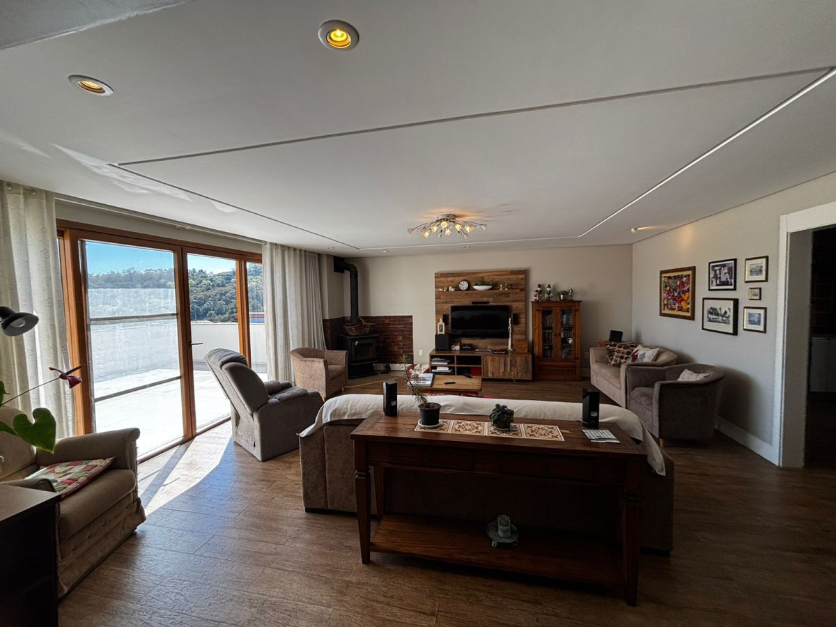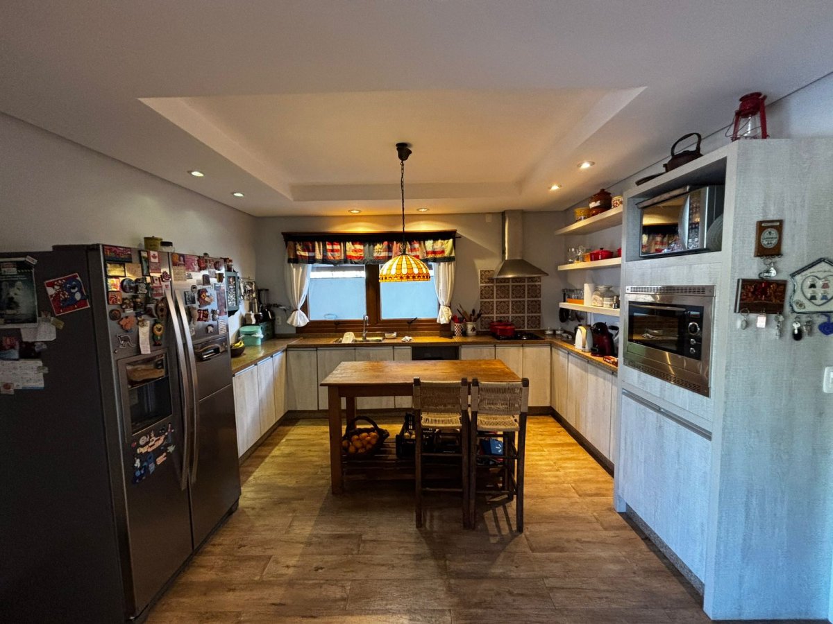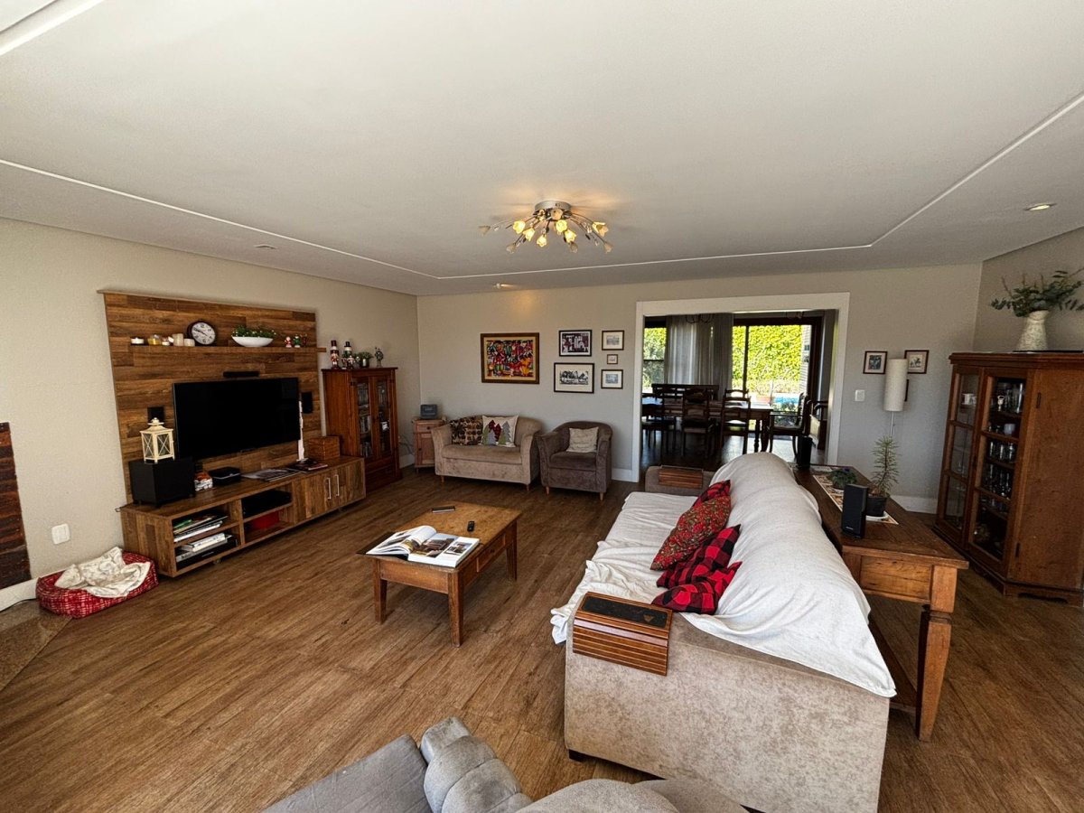 2º Pavimento: 01 suíte, lavabo, sala de estar com lareira e terraço, cozinha, área gourmet com churrasqueira rotativa, piscina com aquecimento, banheiro da piscina, área de serviço, garagem e depósito.